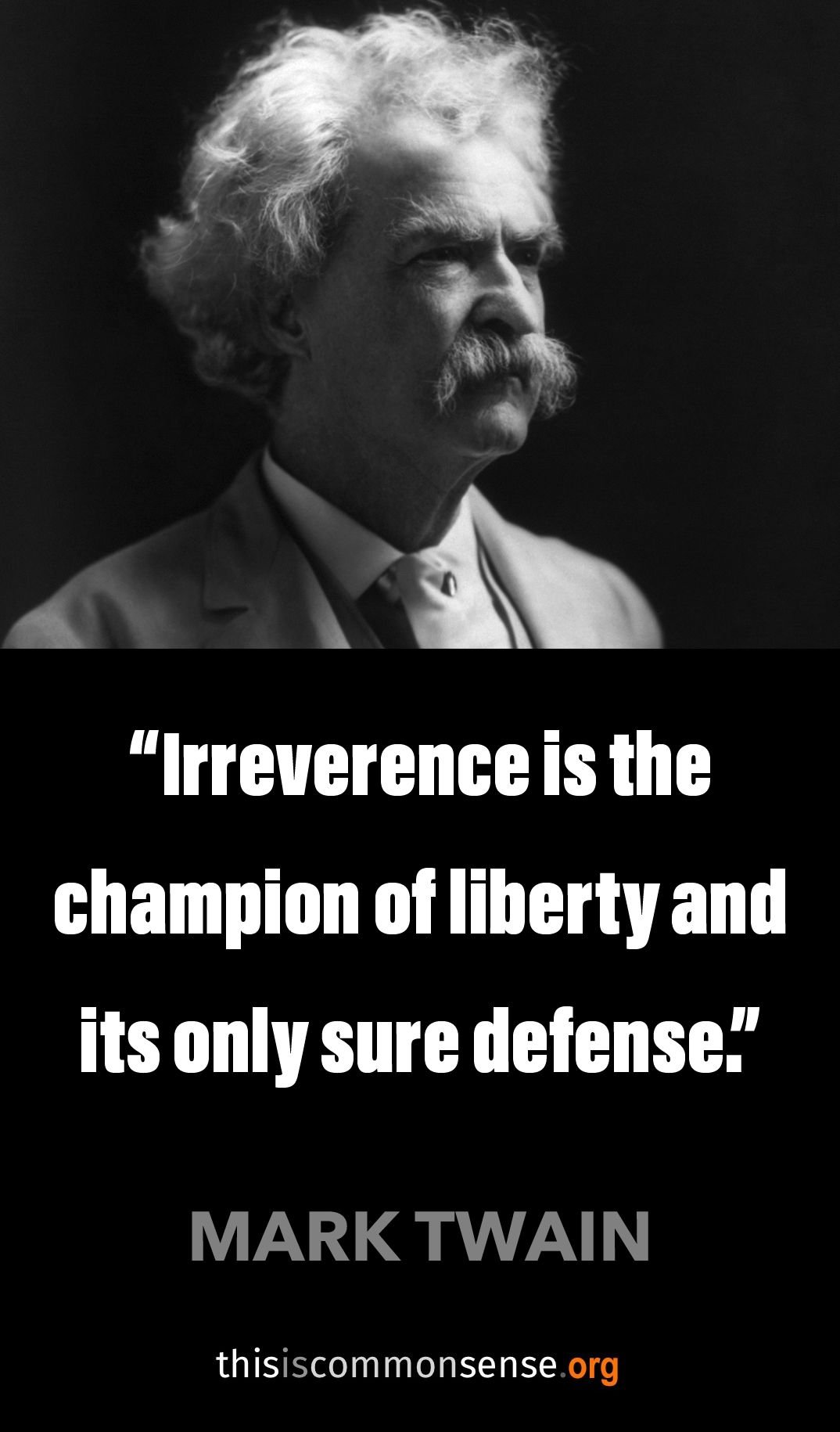 Our papers have one peculiarity — it is American — it exists nowhere else — their irreverence. May they never lose and never modify it. They are irreverent to pretty much everything, but where they laugh one good king to death, they laugh a thousand cruel and infamous shams and superstitions into the grave, and the account is squared. Irreverence is the champion of liberty and its only sure defense.