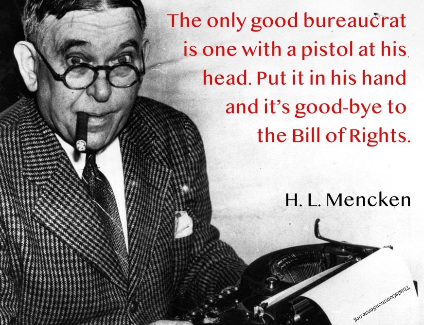 The only good bureaucrat is one with a pistol at his head. Put it in his hand and it’s good-bye to the Bill of Rights.
