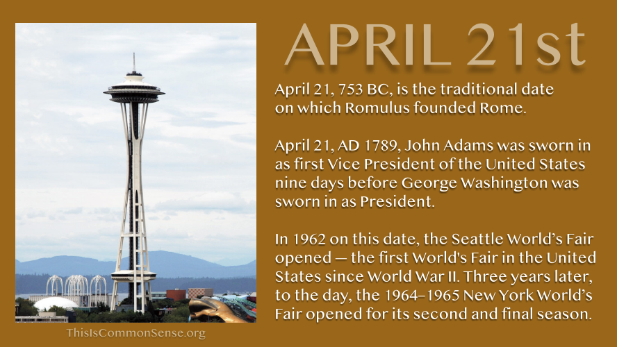 In 1962 on this date, the Seattle World’s Fair opened — the first World’s Fair in the United States since World War II. Three years later, to the day, the 1964 – 1965 New York World’s Fair opened for its second and final season.