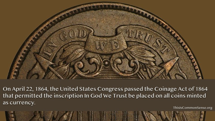 On April 22, 1864, the United States Congress passed the Coinage Act of 1864 that permitted the inscription In God We Trust be placed on all coins minted as currency.