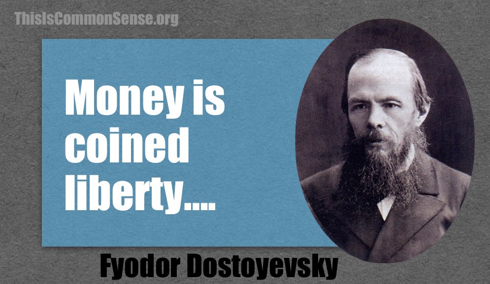 Money is coined liberty, and so it is ten times dearer to the man who is deprived of freedom. If money is jingling in his pocket, he is half consoled, even though he cannot spend it.