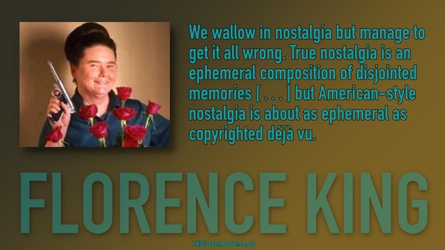 We wallow in nostalgia but manage to get it all wrong. True nostalgia is an ephemeral composition of disjointed memories […] but American-style nostalgia is about as ephemeral as copyrighted déjà vu.