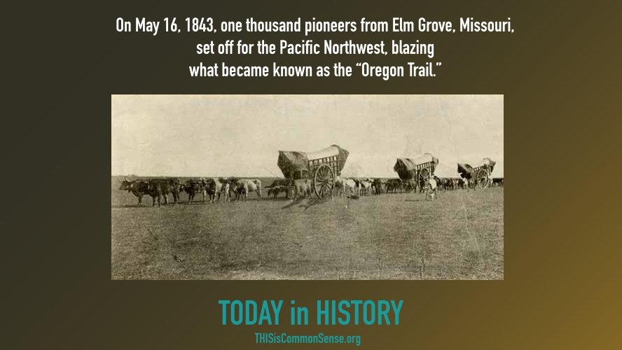 On May 16, 1843, one thousand pioneers from Elm Grove, Missouri, set off for the Pacific Northwest, blazing what became known as the “Oregon Trail.”