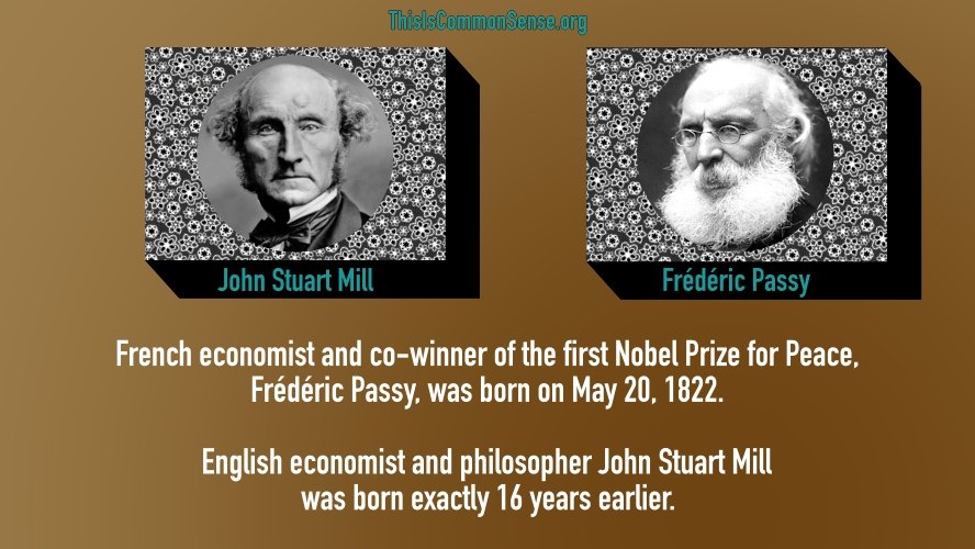 French economist and co-winner of the first (1901) Nobel Prize for Peace, Frédéric Passy, was born on May 20, 1822.