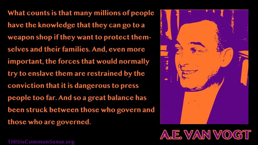 You really don’t understand. We don’t worry about individuals. What counts is that many millions of people have the knowledge that they can go to a weapon shop if they want to protect themselves and their families. And, even more important, the forces that would normally try to& enslave them are restrained by the conviction that it is dangerous to press people too far. And so a great balance has been struck between those who govern and those who are governed.