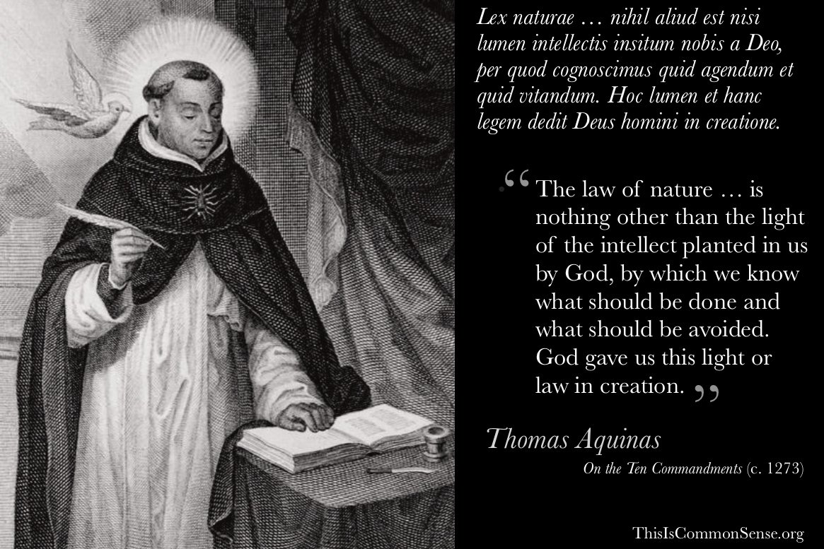 Lex naturae … nihil aliud est nisi lumen intellectis insitum nobis a Deo, per quod cognoscimus quid agendum et quid vitandum. Hoc lumen et hanc legem dedit Deus homini in creatione.