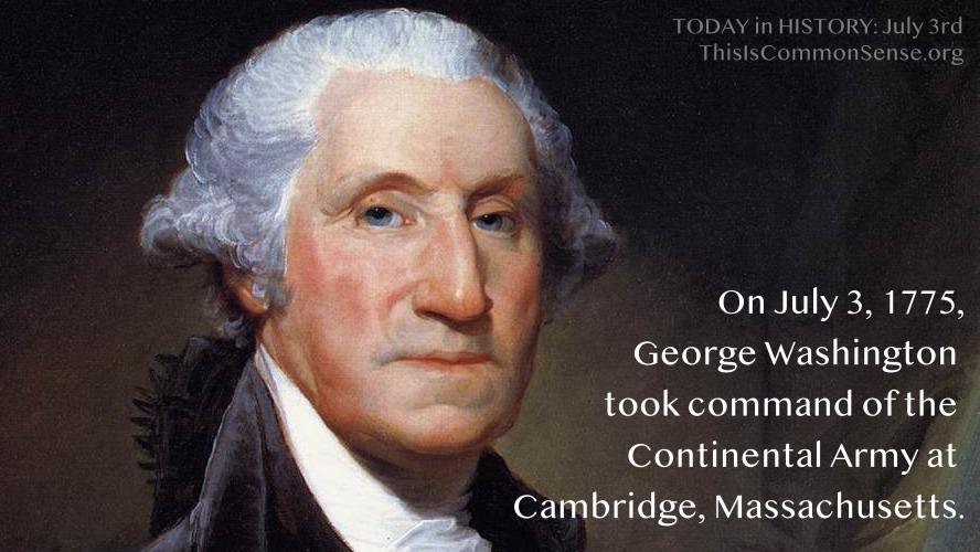 On July 3, 1775, George Washington took command of the Continental Army at Cambridge, Massachusetts.