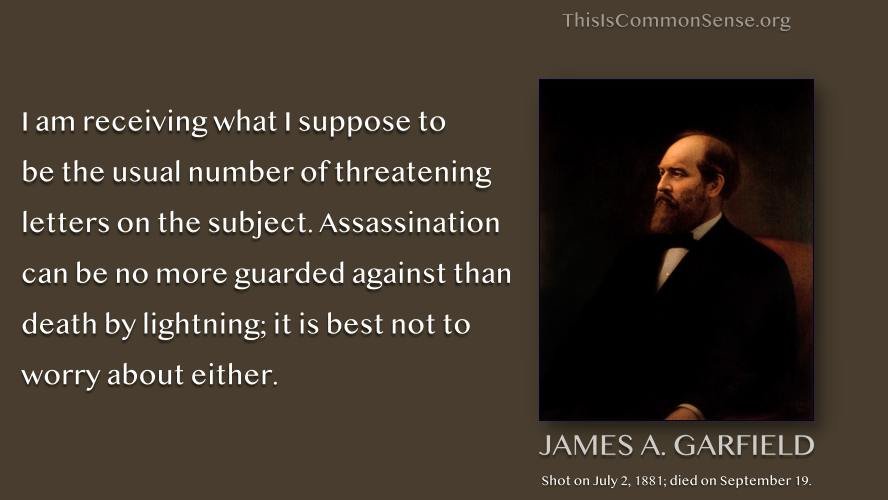 I am receiving what I suppose to be the usual number of threatening letters on the subject. Assassination can be no more guarded against than death by lightning; it is best not to worry about either.