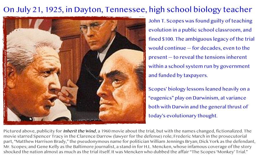 Scopes’ biology lessons leaned heavily on a “eugenics” play on Darwinism, at variance both with Darwin and the general thrust of today’s evolutionary thought.