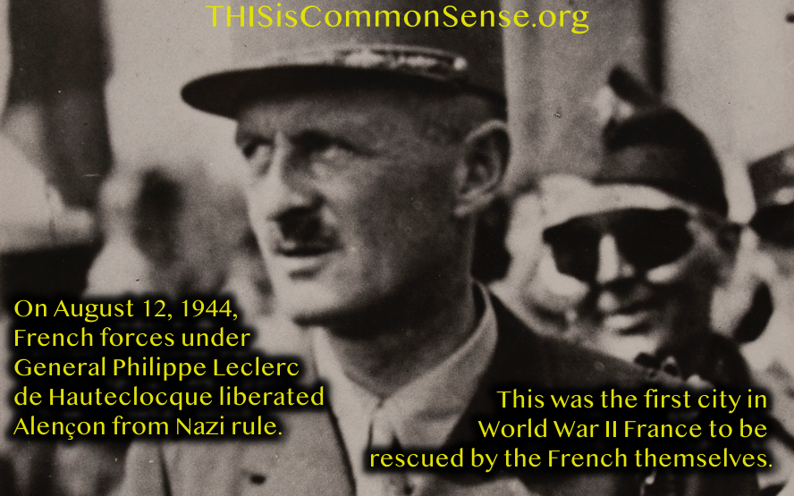 On August 12, 1944, French forces under General Philippe Leclerc de Hauteclocque liberated Alençon from Nazi rule — the first city in World War II France to be rescued by the French themselves.