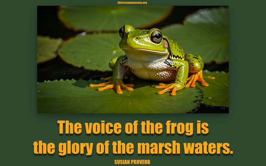 The voice of the frog is the glory of the marsh waters.