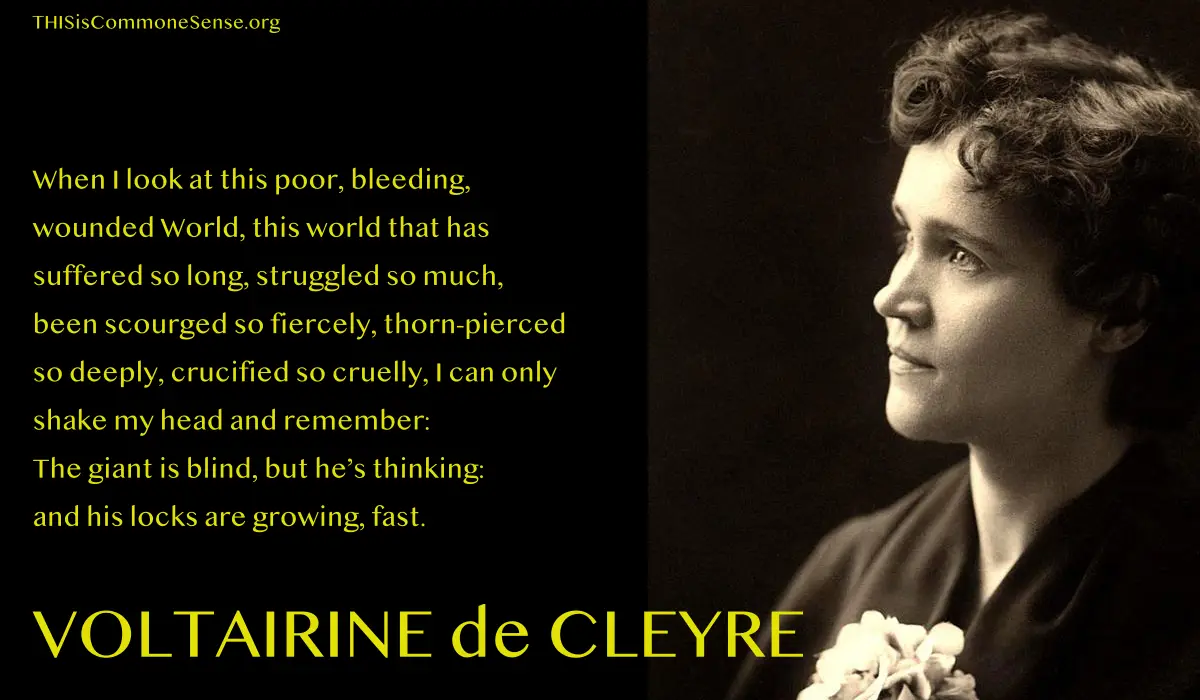 Voltairine de Cleyre, conclusion to her essay, “The Economic Tendency of Freethought,” Liberty Vol. XI, #25 (February 15, 1890), alluding to the Biblical Samson (Judges) as the giant.