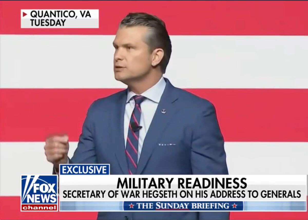 The previous Tuesday, Hegseth had made waves denying to women any easier physical qualification standard to get in the military, demanding a return to pre-​2015 qualification standards. And advised his audience of big brass that just as rank-​and-​file military personnel should be fit, so too should U.S. generals and admirals not be fat.