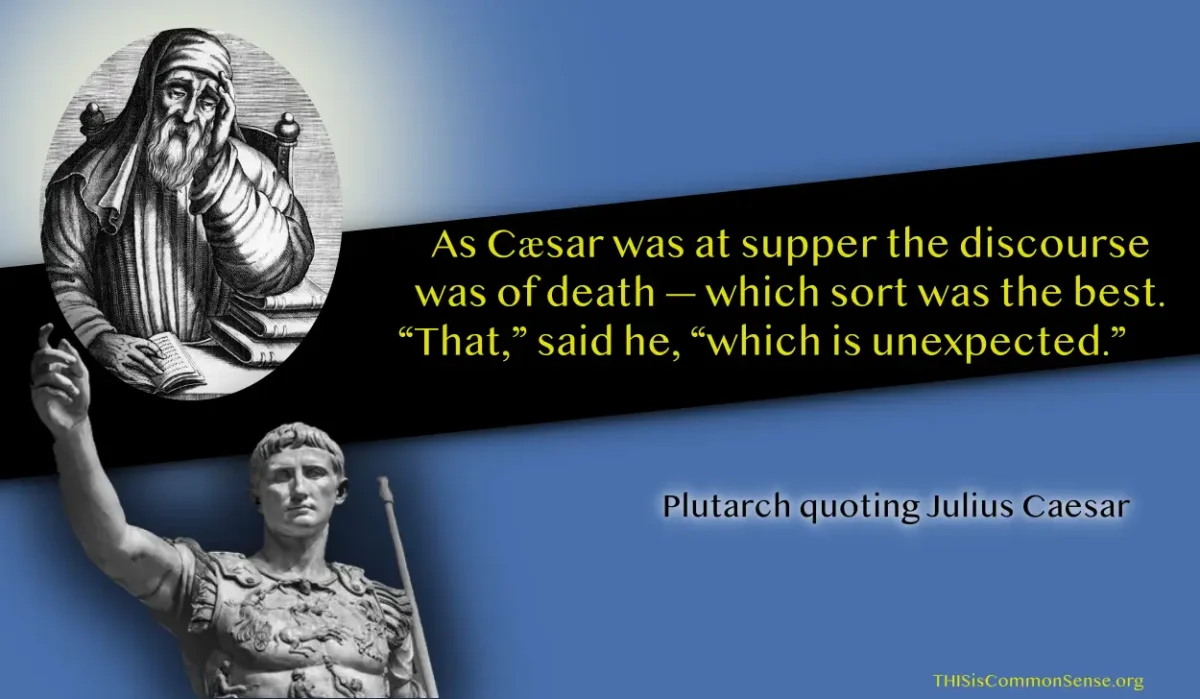 As Cæsar was at supper the discourse was of death — which sort was the best. “That,” said he, “which is unexpected.”