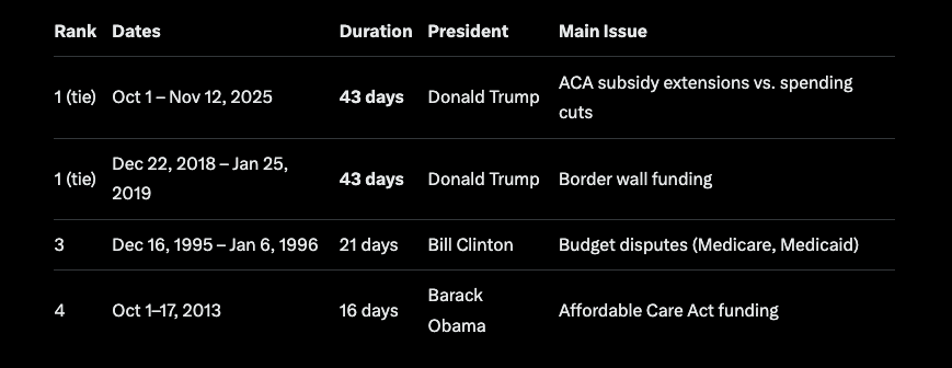 But do most people focus on President Trump, however, blaming him for the shutdown? Apparently not. While Rasmussen Reports indeed showed Congress’s approval plummeting to historic lows post-shutdown, President Trump’s job approval ratings proved more resilient but still took a hit. Based on daily tracking from Rasmussen — America’s most frequent presidential pollster — Trump’s numbers held steady in the low-to-mid 40s through early October but eroded gradually as the 43-day shutdown dragged on, bottoming out around November 12, the day it ended. Disapproval climbed, driven by independents and even some GOP softening on his handling of the crisis. Post-shutdown, there’s been a modest rebound.