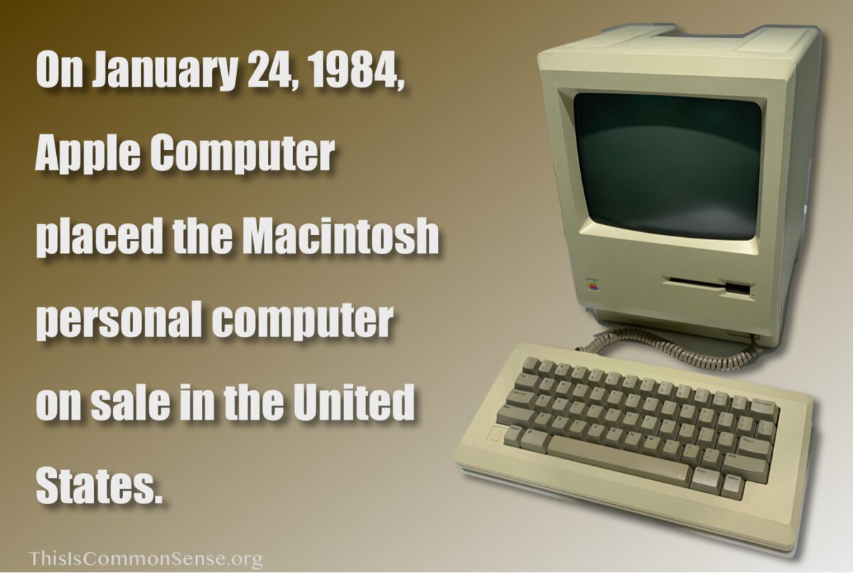 On January 24, 1984, Apple Computer placed the Macintosh personal computer on sale in the United States.