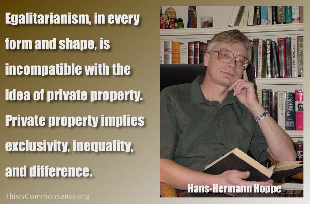 Egalitarianism, in every form and shape, is incompatible with the idea of private property. Private property implies exclusivity, inequality, and difference.