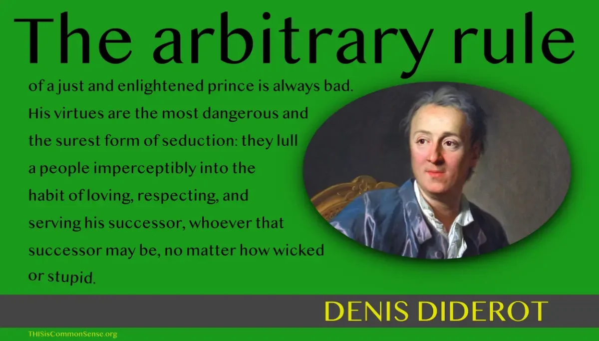 The arbitrary rule of a just and enlightened prince is always bad. His virtues are the most dangerous and the surest form of seduction: they lull a people imperceptibly into the habit of loving, respecting, and serving his successor, whoever that successor may be, no matter how wicked or stupid.