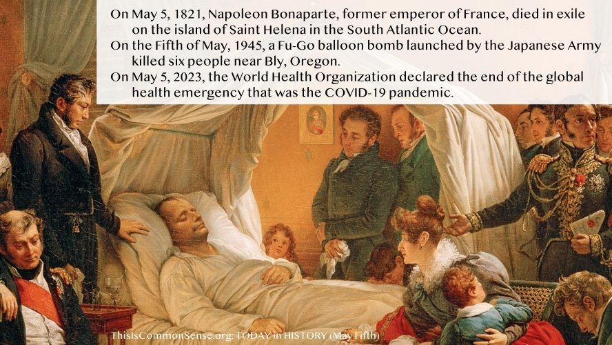 On May 5, 1821, Napoleon Bonaparte, former emperor of France, died in exile on the island of Saint Helena in the South Atlantic Ocean.
