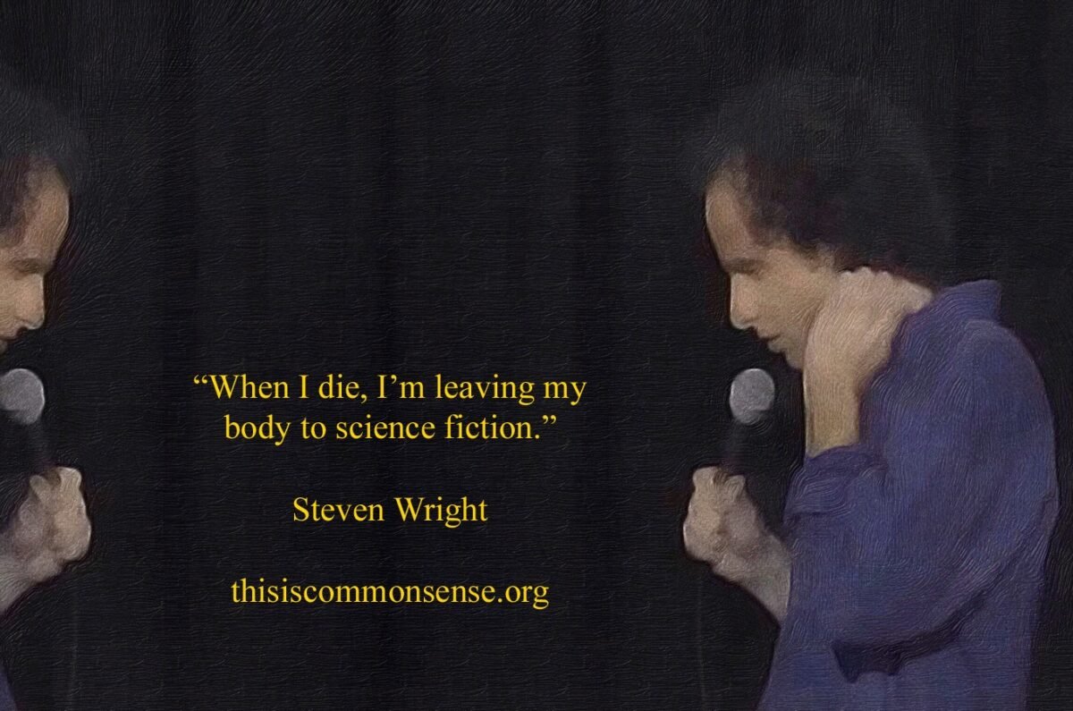 Categories Thought Steve Wright Post author By Redactor Post date October 12, 2025 No Comments on Steve Wright When I die, I’m leaving my body to science fiction. Steven Wright, classic one-liner. ← The West Indies → Ought Implies Can, Vought Implies Will Leave a Reply Cancel replyYour email address will not be published. Required fields are marked *Comment * Name * Email * Website one × = Δ