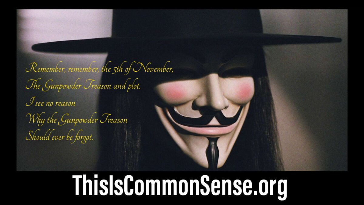 Guy Fawkes himself had been assigned to light the fuse. He was tortured, tried, and finally executed on the last day of the first month of the next year. Parliament declared a memorial day of November Fifth, and the event has been celebrated in one form or other ever since, echoed in literature, with poems by John Milton (1626), a novel by William Harrison Ainsworth (1841), and a comic by Alan Moore and David Lloyd (1982 – 1989) contributing to the memorials. The latter was turned into a movie, V for Vendetta (2006), in which the hero wears a Guy Fawkes mask (designed by Lloyd) and recites a famous nursery rhyme on the subject: